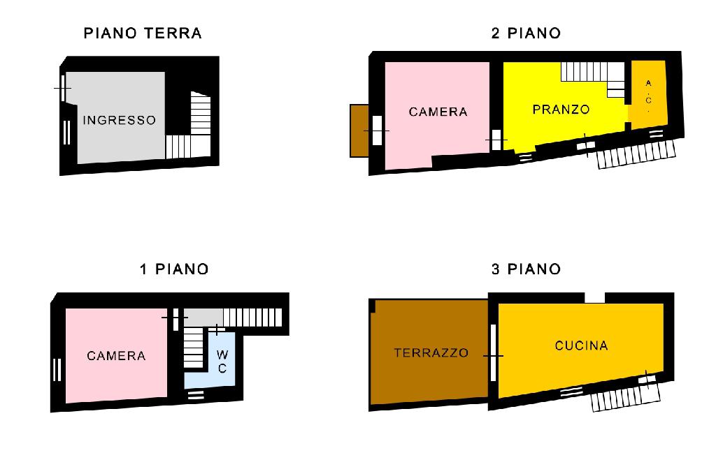 Simili nella conformazione, che è tipica delle costruzioni dell'epoca e del tessuto urbanistico di questo spaccato di paese, le due palazzine si sviluppano su 4 elevazioni, tutte fuori terra.